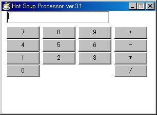 あとは機能をつければ電卓として動く そこでどのような機能が必要なのかを考えてみる 1.数値ボタンを押したら、表示エリアに数値を表示 2.表示の際、数値エリアに既に数字があれば、その数値を入力した数値の前部分に足す まずはこの二つの入力の処理を考えてましょう そこで、わかりやすくするために、ボタン「1」と表示枠を残し、他をコメントアウトした形に プログラムを変えてみた コメントアウトは範囲指定する場合には/* から */(実際は半角)で囲めばOK ボタン1を押した際の処理は「*_1」で行っている そこでまずは1の処理をここに記載する プログラム中での表示エリアのオブジェクトは「input」で この表示エリアは「siki」という変数になっている この変数にボタンを押した際の数値をいれればよい事になる オブジェクトの中身を変更するには「objprm」命令を使用する で、実際にどう利用するか? それはまた明日・・・ 普通の電卓は表示するスペースは上部にある screen Wind_main,300,200 *_1 |